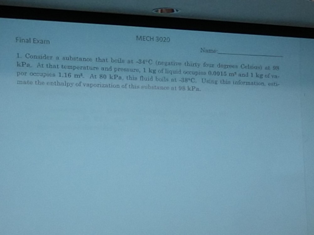 MECH 3020 Final Exarn Name- 1 Consider A Substance... | Chegg.com